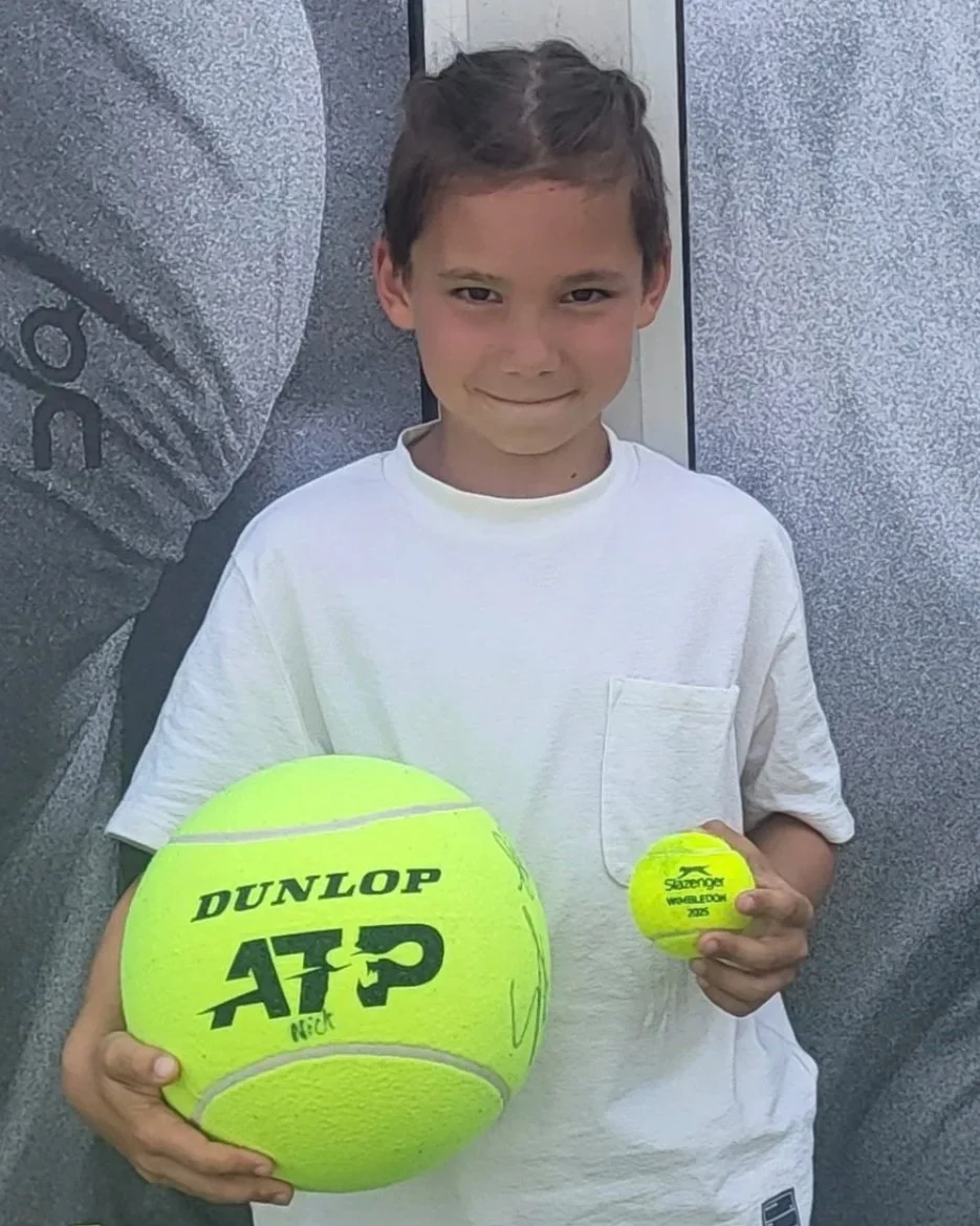 Maddox: Jens ist der beste Tennistrainer – immer gut drauf und voll witzig! Da macht das Training richtig Spaß! Und klar, wir Jungs lieben alle den KSC – ist doch logisch.“